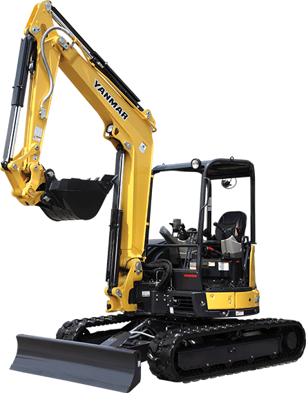 Mini excavator turns completely within its own tracks with stability of a conventional excavator.
